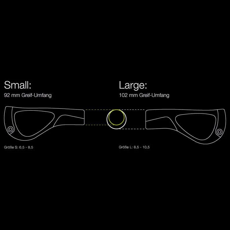 - Small: 92 mm Greifumfang (Handschuhgröße 6,5 – 8,5)