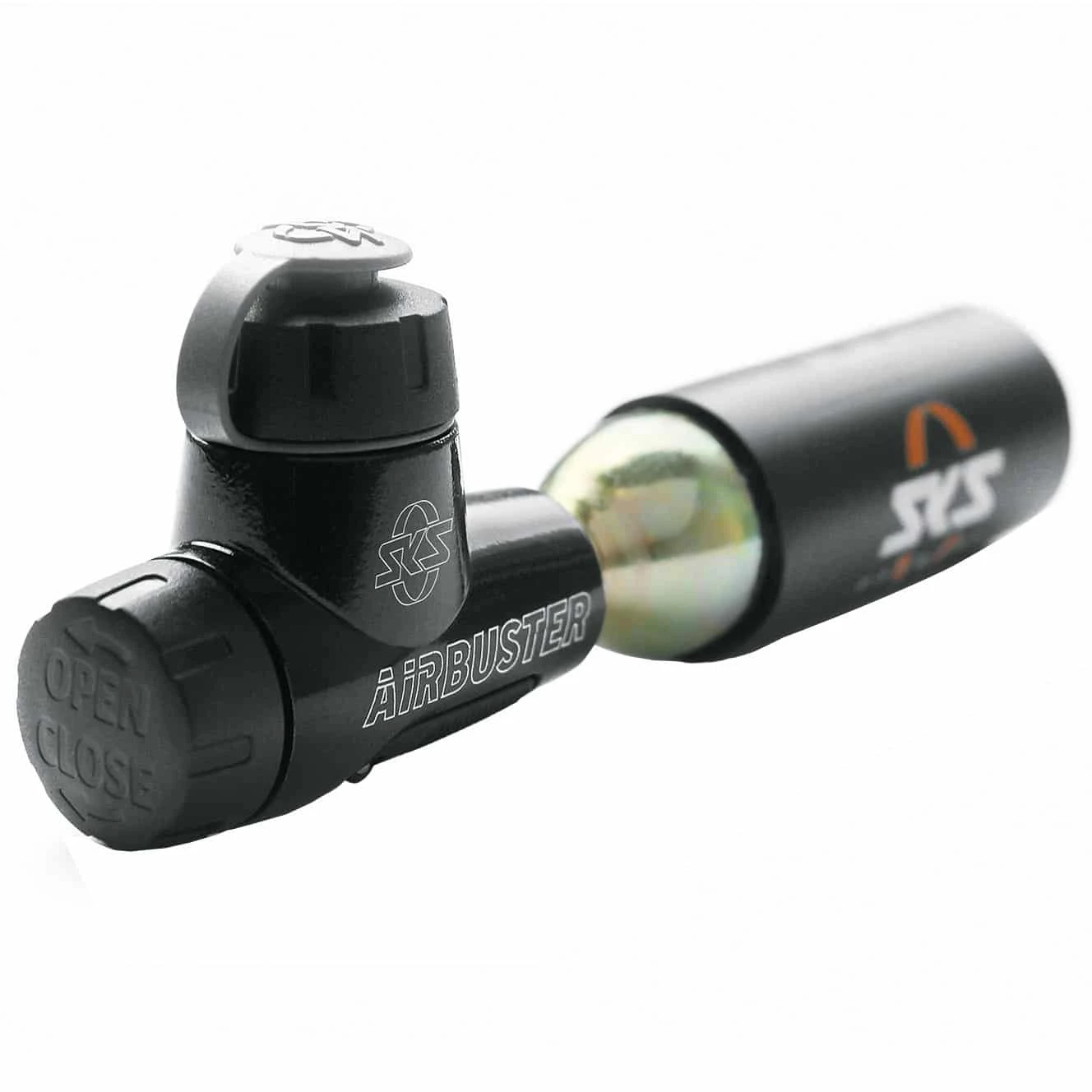 angepasst werden. Enthalten ist die schwarze SKS Airbuster CO2 Kartuschenpumpe,